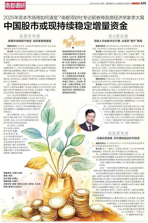 2025年,股票市场可能由政策驱动转变为“政策+业绩”双驱动,从此前急剧上升的脉冲式行情转变为稳步缓慢回升的“慢牛”格局。