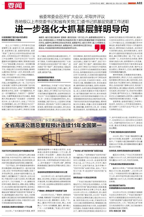 1月13日上午,省委常委会召开扩大会议,听取各地级以上市党委书记和省有关党(工)委书记抓基层党建工作述职并进行评议。