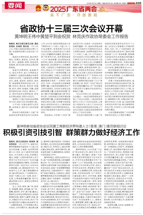 1月14日上午,中国人民政治协商会议第十三届广东省委员会第三次会议在广州开幕。