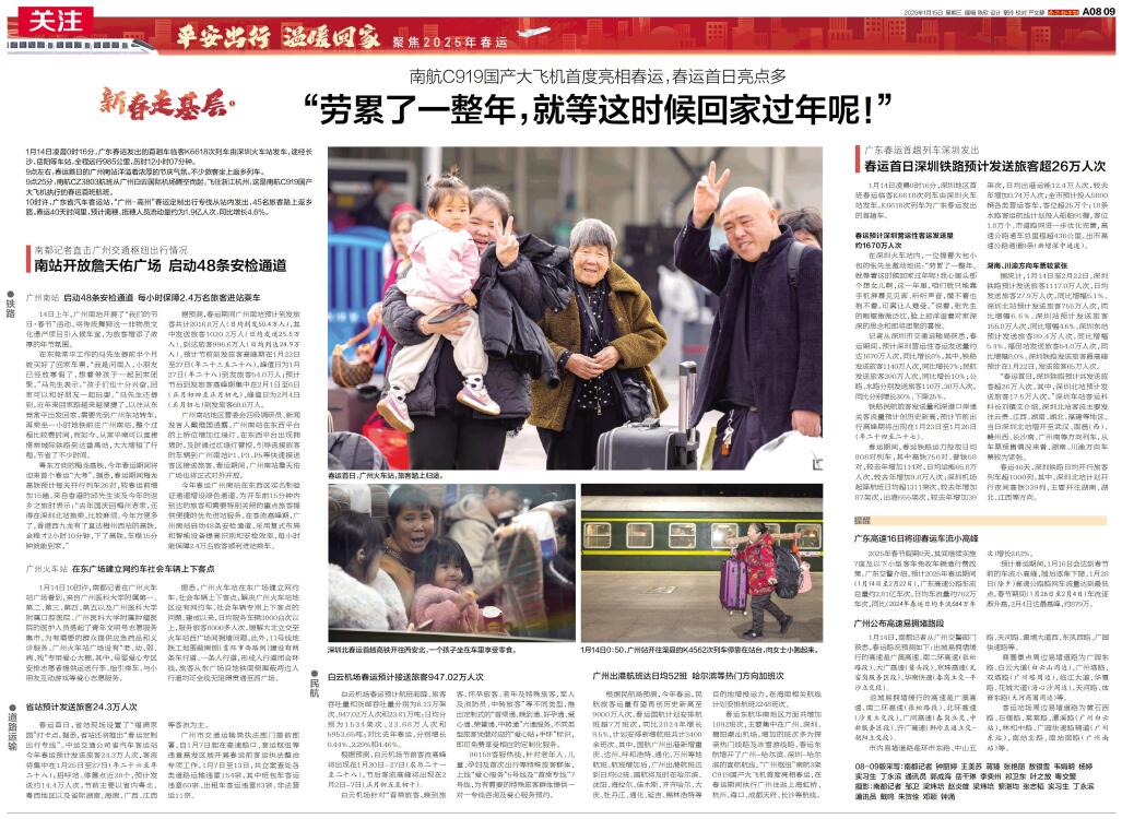1月14日凌晨0时16分,广东春运发出的首趟车临客K6618次列车由深圳火车站发车,途经长沙、岳阳等车站,全程运行985公里,历时12小时07分钟。