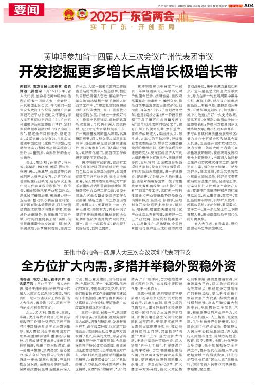 1月15日下午,省人大代表、省长王伟中到他所在的省十四届人大三次会议深圳代表团,与代表们一起审议省政府工作报告。