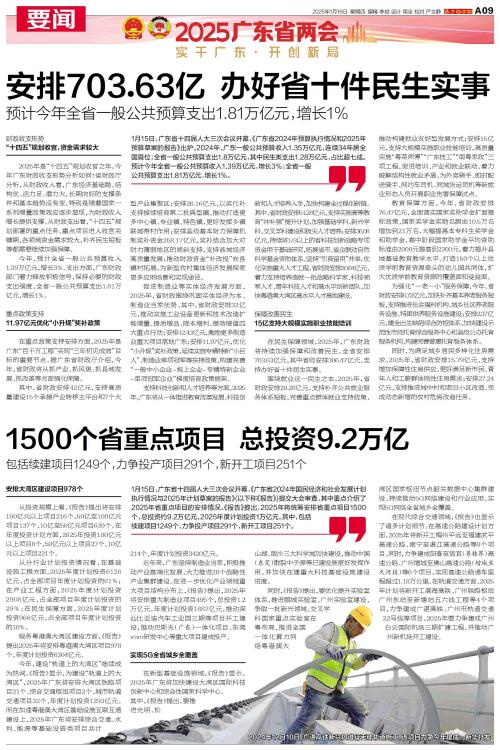 1月15日,广东省十四届人大三次会议开幕,《广东省2024年预算执行情况和2025年预算草案的报告》出炉。