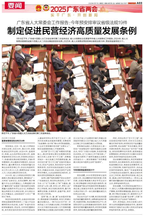 1月16日下午,广东省十四届人大三次会议举行第二次全体会议,省人大常委会主任黄楚平作省人大常委会工作报告。