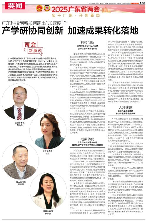 省人大代表、省政协委员围绕这一话题,从加强基础研究和关键技术攻关、完善科技成果转化服务体系、加快打造高水平人才高地等方面建言献策。