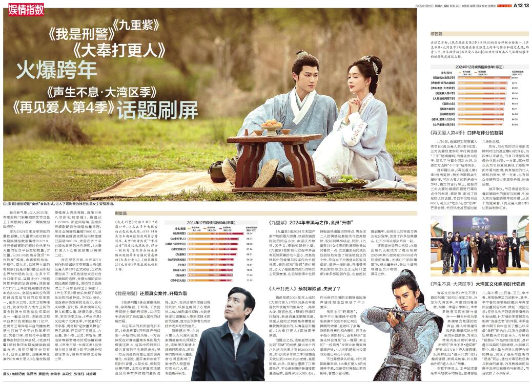 《大奉打更人》《我是刑警》《九重紫》火爆跨年 《声生不息·大湾区季》《再见爱人第4季》话题刷屏