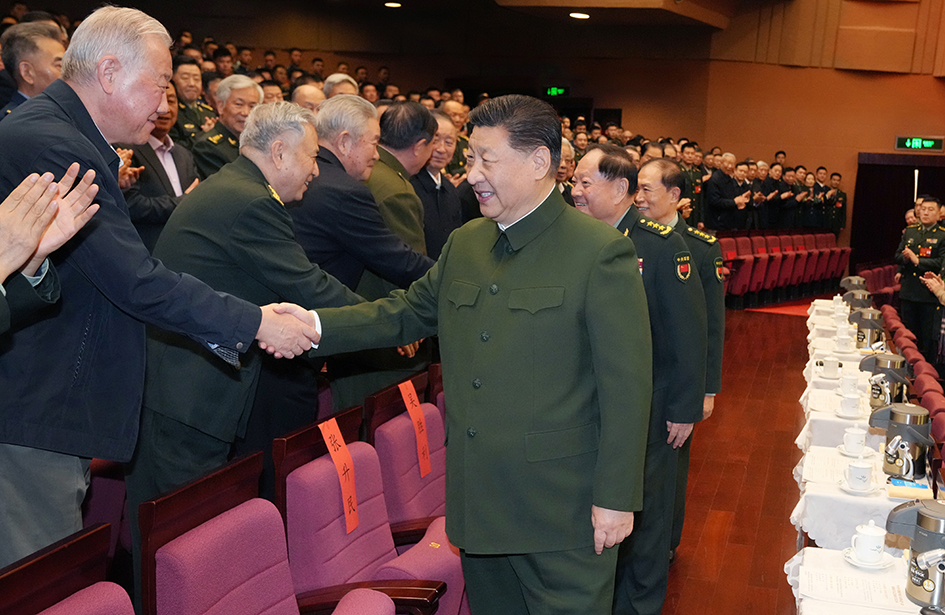 下午4时许,习近平来到老同志中间,全场响起热烈掌声。习近平同大家亲切握手、互致问候,关切询问他们的身体和生活情况,共同回顾过去一年党、国家和军队事业走过的不平凡历程、取得的重大成就。老同志们一致表示,要更加紧密地团结在以习近平同志为核心的党中央周围,坚持以习近平新时代中国特色社会主义思想为指导,深入贯彻习近平强军思想,深刻领悟“两个确立”的决定性意义,坚决做到“两个维护”,贯彻军委主席负责制,弘扬光荣传统、永葆政治本色,坚定信心、团结奋斗,继续为打好实现建军一百年奋斗目标攻坚战,为以中国式现代化全面推进强国建设、民族复兴伟业作出积极贡献。