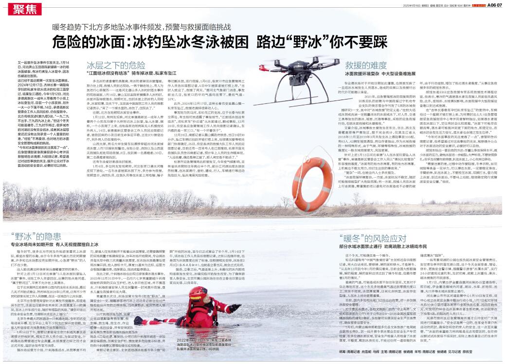 危险的冰面:冰钓坠冰冬泳被困 路边“野冰”你不要踩