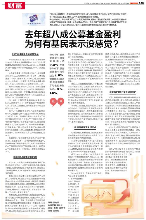 去年超八成公募基金盈利 为何有基民表示没感觉?