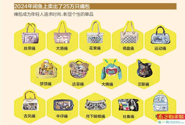 以痛包为例,2024年,有25万只痛包在闲鱼被卖出。不管何种样式、配色、食量(购买周边的数量)、使用场景需求,买家都能在闲鱼找到心仪的痛包。