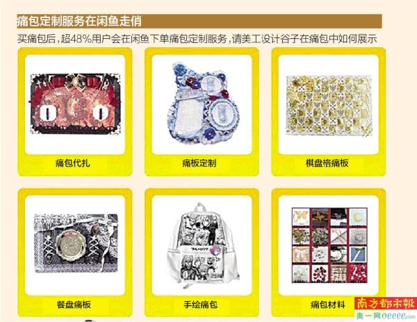 报告显示,超48%的用户购入痛包之后会在闲鱼下单痛包定制类服务,包括痛包代扎、痛包云扎、痛板定制等。其中,棋盘格痛板和餐盘痛板是闲鱼时下最受欢迎的痛板定制类型,购置痛包谷美材料的手作圈卖家和个人玩家也不在少数。