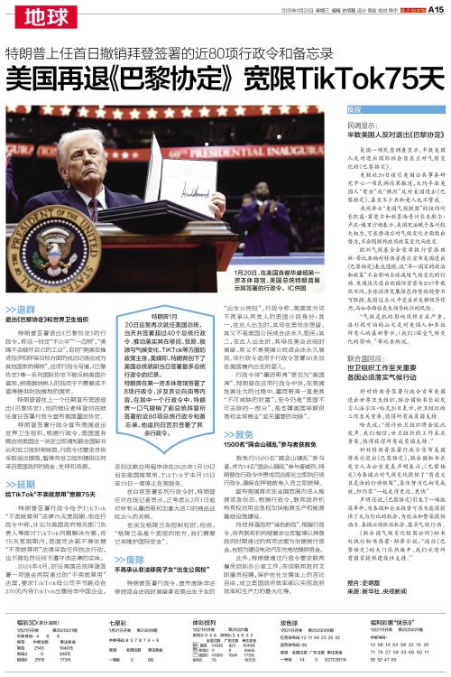 特朗普1月20日宣誓再次就任美国总统,当天共签署超过40个总统行政令,推动落实其在移民、贸易、能源与气候变化、TiKTok等方面的政策主张。
