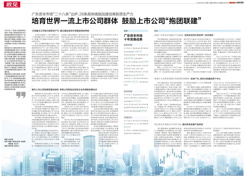 1月21日,广东省人民政府网站发布广东省人民政府印发《关于高质量发展资本市场助力广东现代化建设的若干措施》的通知,新政共部署了28条具体措施,并对48项具体工作进行了责任单位分工。