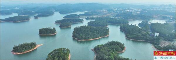 2024年3月28日,徐闻县大水桥水库饮用水源地保护综合治理项目开工,项目建成后每年可有效减少饮用水源地库区水土流失约58.11吨,年增加引水量2500万立方米,水库水质将得到明显提升。在徐闻上空鸟瞰大水桥水库,它如同一颗“心脏”般滋养一方百姓。
