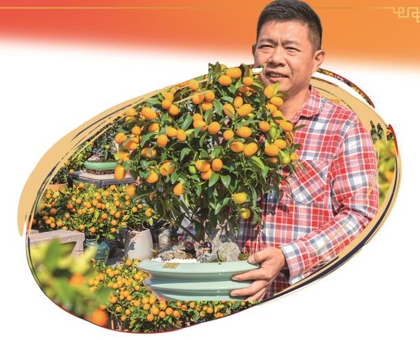 而他家主要销售小型年桔盆景,希望通过创意开拓年轻化市场。今年新春,他以“岭南山水”为主题,设计盆景造型,在年桔四周点缀微型园林景观模型,更添意趣。“这几年,这类盆景特别受欢迎,大家不仅是买一株年桔,还要买一盆美景回家。”