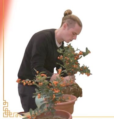 1月11日,他在珠海举办的外国人才插年花迎新春活动中,制作了年桔盆景,“每年春节,我都看到人们在家门口摆放年桔,今天才知道它是广东新春传统,象征着出入吉祥、家庭平安,这个春节活动真的很棒。”