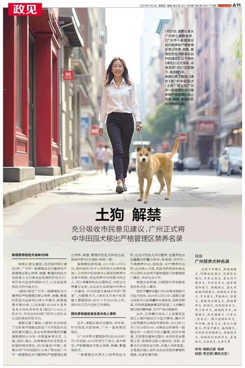 1月21日,南都记者从广州市公安局获悉,《广州市一般管理区实行圈养和严格管理区禁止饲养、销售、繁殖的危险犬标准及品种的通告》。