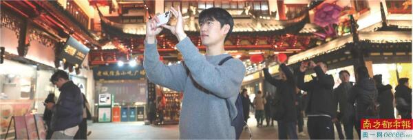 2024年12月25日,韩国游客金敏炯在上海豫园商城拍照。 新华社发
