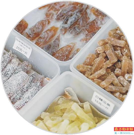 这原料干净、味道清甜的糖冬瓜,是广东人喜欢购买的传统年货。糖冬瓜还能泡水,起到清热利湿、生津止渴的功效。许志敏向南都记者提到,这是外省“回头客”最喜爱的食用方式,“过年买糖水果,吃的是吉利,也图来年健健康康”。
