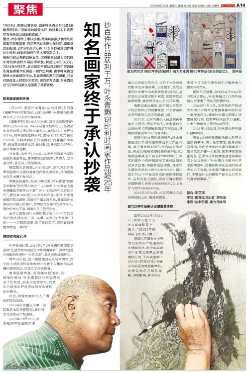 1月24日,南都记者获悉,画家叶永青公开刊登《道歉声明》称,“我诚恳地接受批评,检讨教训,并向西尔万先生致以诚挚的道歉。”