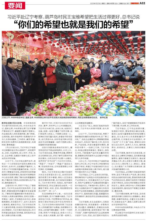 中共中央总书记、国家主席、中央军委主席习近平冒着严寒来到辽宁,看望慰问基层干部群众,向全国各族人民和香港同胞、澳门同胞、台湾同胞、海外侨胞拜年!