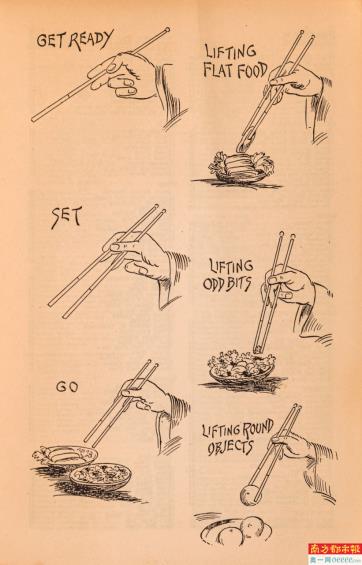 17世纪以后,随着中西方交流频繁和华侨华人移居海外,筷子走向世界。这是美国1936年出版的书籍《中餐食谱》(The Chinese Cook Book)中关于筷子的介绍。