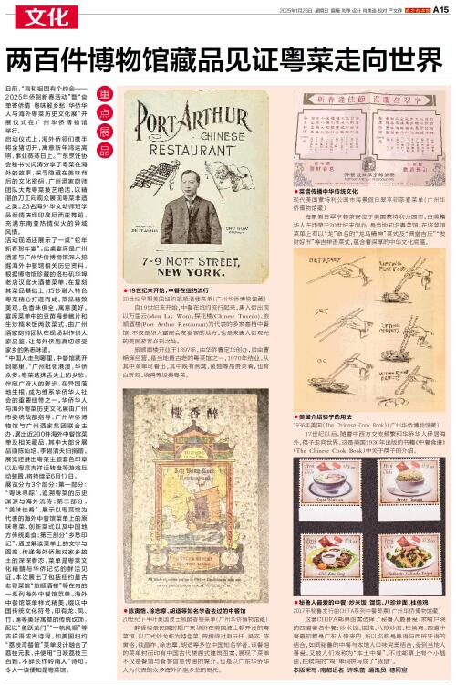 日前,“我和祖国有个约会——2025年侨贺新春活动”暨“食单寄侨情 粤味解乡愁:华侨华人与海外粤菜历史文化展”开展仪式在广州华侨博物馆举行。