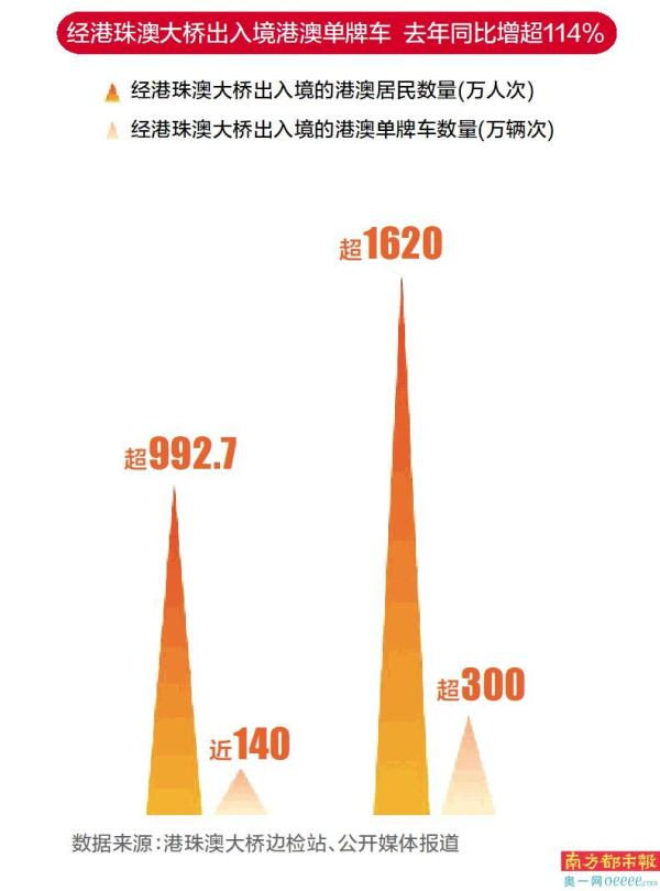 值得一提的是,“澳车北上”“港车北上”相继落地实施,为港澳居民提供了新的出行选择,如今,自驾北上“家庭游”越来越普遍。数据显示,2024年,经港珠澳大桥珠海公路口岸出入境的港澳旅客超1620万人次,同比增长63%,占口岸客流总量近六成;经港珠澳大桥珠海公路口岸出入境的港澳单牌车超300万辆次,同比增超114%,占车流总量的55%。