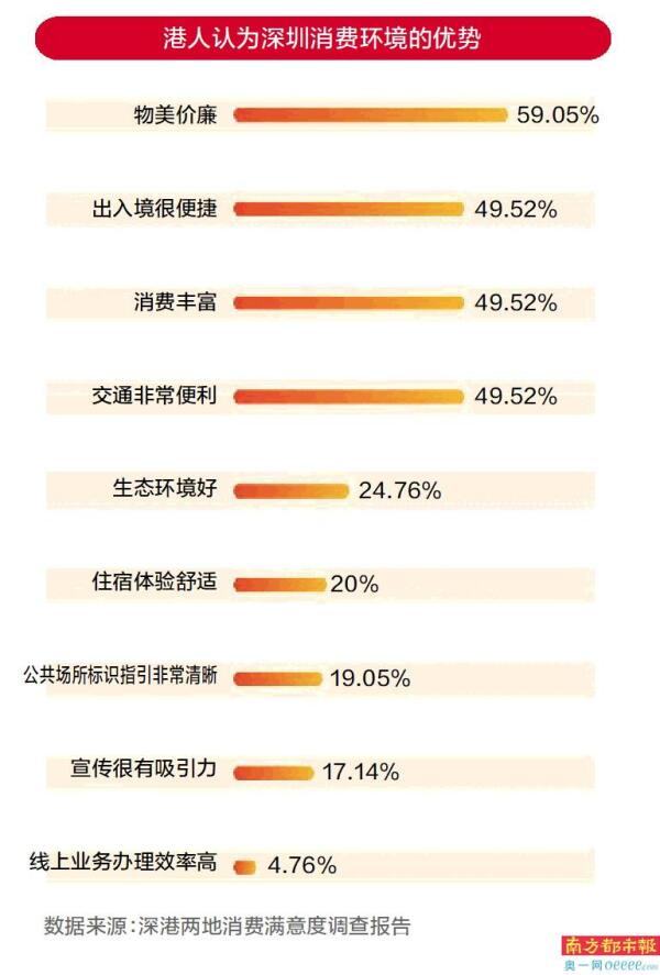 “深港两地消费满意度调查”结果显示,港人消费者对深圳消费的整体满意度较高,满意率高达97.14%。物美价廉和丰富的产品种类、消费便利是吸引大量香港消费者来深圳消费的主要原因。同时,北上消费对场所软性环境、便民服务、支付便捷性、消费维权等消费环境的关注度越来越高,产品质量与服务质量将会是未来决定北上消费是否可持续的关键因素。