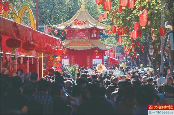 1月28日,除夕,广州市高第街张灯结彩,年节氛围浓厚。
