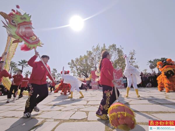 ①珠海金湾,珠港澳舞狮、江门舞龙、三灶鹤舞三大岭南民俗历史首次在金湾同台共舞。