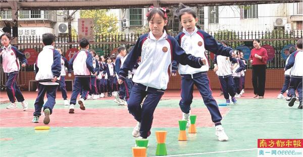 2月13日是广州市2025年春季学期开学日,当天下午3点10分,广州市天河区华阳小学(天河东校区)正在进行“游戏大课间”,南都记者在现场看到,学生们拎着锻炼用具,有序地跑进操场并列队,做完一套热身操后,便摆开器械,开始撒腿跑、跳、跨越、冲刺……