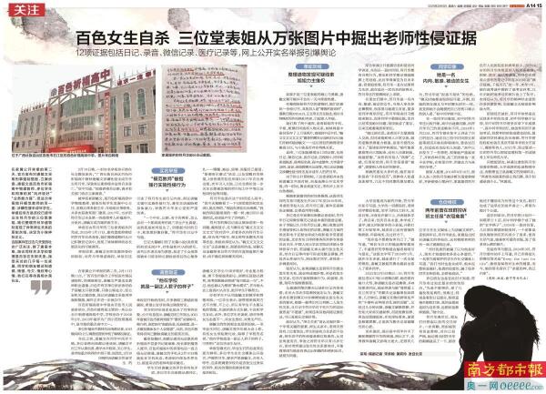 南都2月15日A14-15版深度报道广西百色高中教师被指控性侵事件。