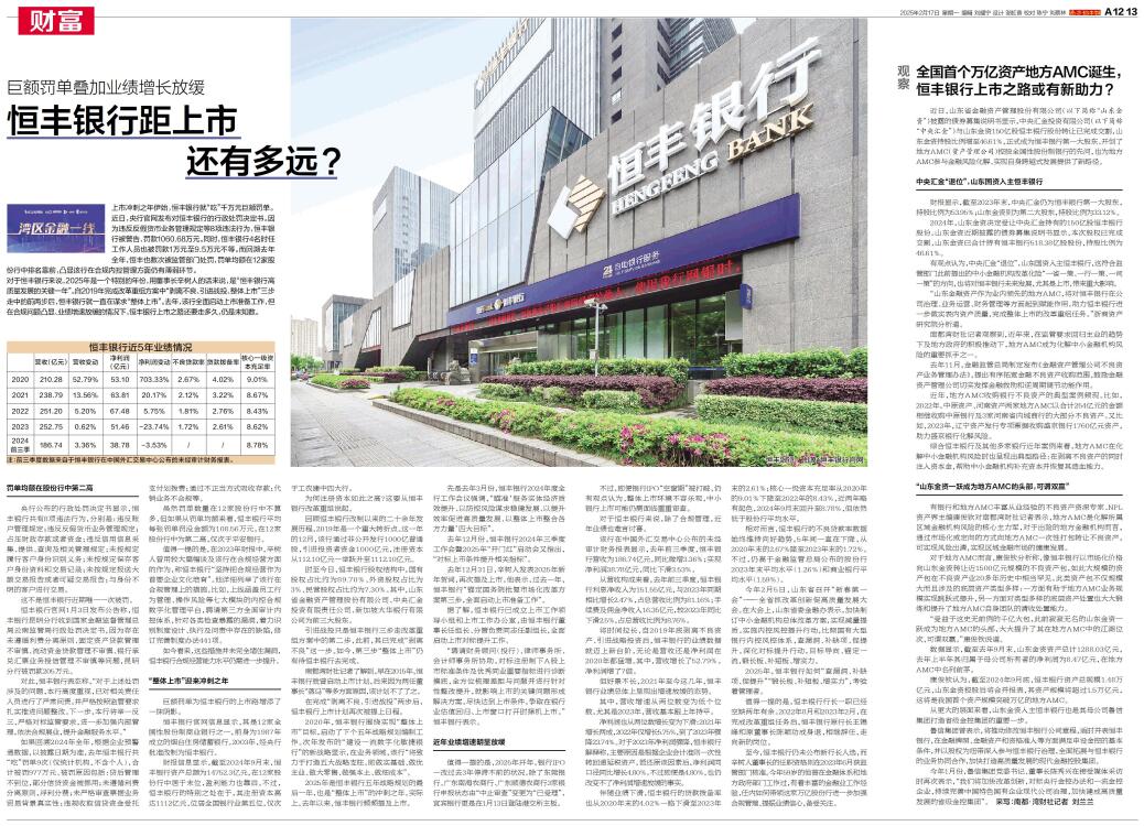 2025年是恒丰银行五年战略规划的最后一年,也是“整体上市”的冲刺之年。实际上,去年以来,恒丰银行频频提及上市。