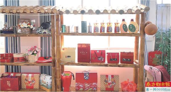 为了带动家乡发展,蓝建忠、黄丹霞夫妇在公司内设置畲乡农产品展销室,担任起了优质农产品的“经销商”与“代言人”,“我们将当地农户们的优质农产品摆放在这里,有游客来,我们就帮助他们推广销售,为他们增添一条销路。”