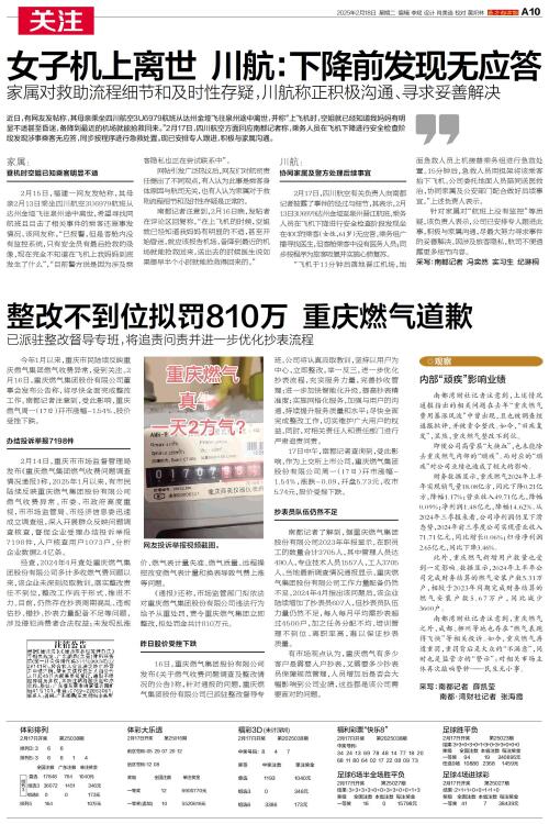今年1月以来,重庆市民陆续反映重庆燃气集团燃气收费异常,受到关注。