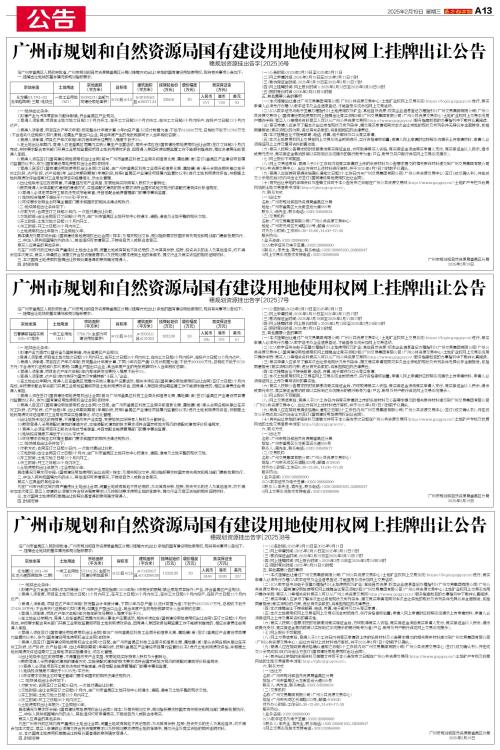 广州市规划和自然资源局国有建设用地使用权网上挂牌出让公告