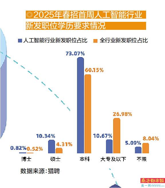 猎聘数据显示,今年新春开工,全行业职位要求本科及以上学历的占比64.98%,而人工智能行业相关职位要求攀升至84.24%。不过,与人工智能人才急剧增加的需求相比,市场上符合要求的高学历人才却相对短缺。