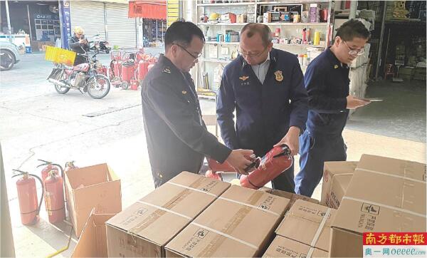 南都记者获悉,2月19日,东莞市镇两级市场监管部门联合警方、消防等部门对梦齐创(广东)消防科技有限公司进行现场检查,现场依法扣押不同型号的灭火器3200多具,并进行抽检。同时,中山市市场监督管理局联合小榄分局和东凤分局分别对中山市小榄镇正品消防器材销售部、中山市东凤镇艾乙任照明电器厂进行检查,并涉事灭火器进行执法抽检。中山市市场监督管理局表示,待检测结果出来后将做进一步处理。
