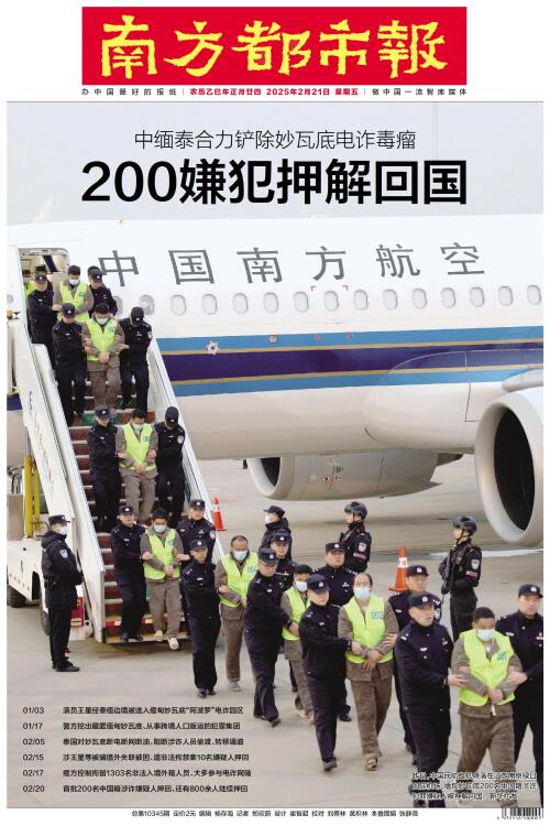 昨日,中国民航包机降落在江苏南京禄口国际机场,缅甸妙瓦底200名中国籍涉诈犯罪嫌疑人被押解回国。