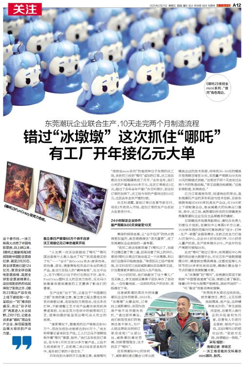 2月17日,记者走访多家“哪吒”周边生产企业,探寻国漫周边爆火背后的产业力量。