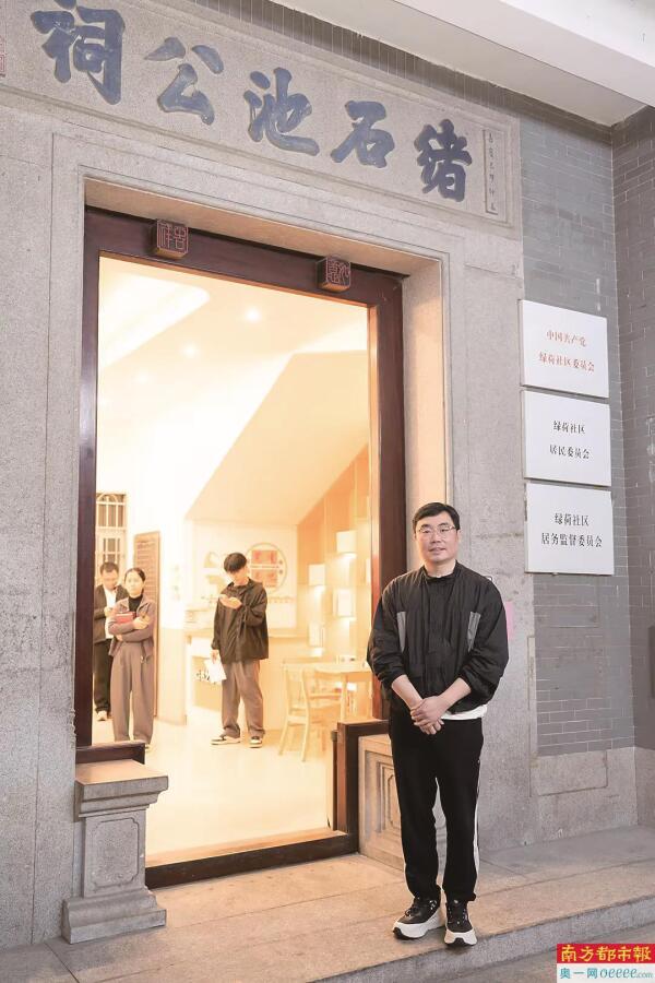蔡崇达在石牌村祠堂采风。