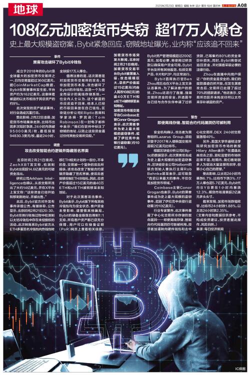 北京时间2月21日晚间,加密货币交易平台Bybit被黑客入侵,攻击规模巨大,总资产价值超过15亿美元(约合人民币108亿元)的逾40万ETH和stETH被转移至未知地址。