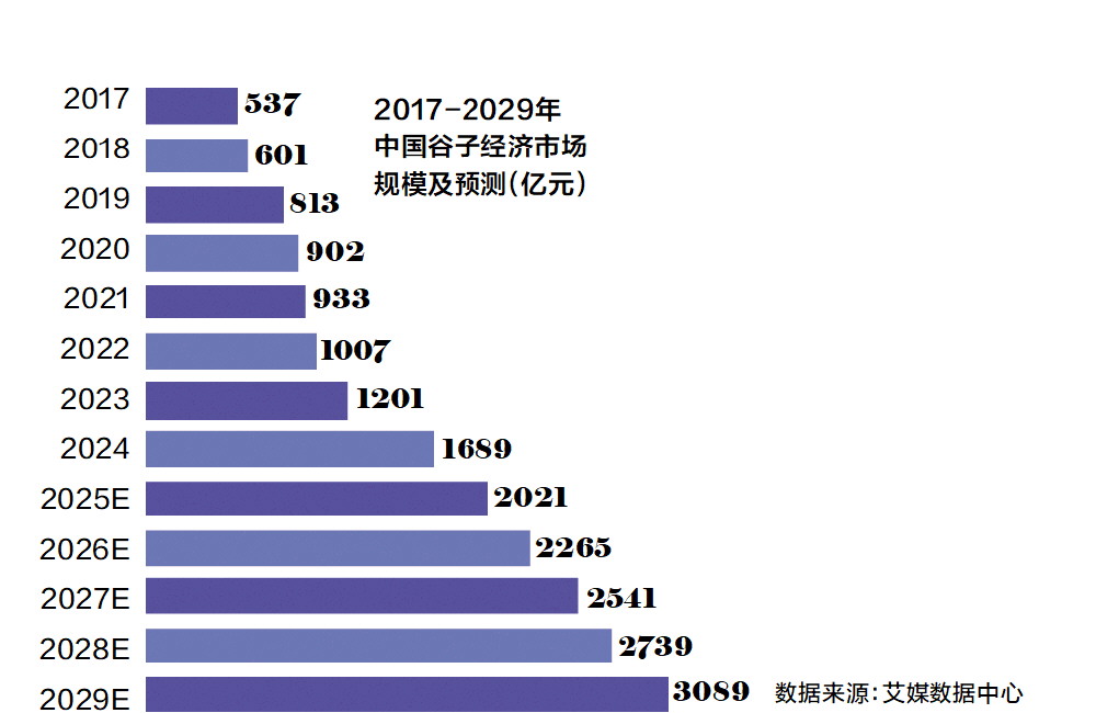 近年来,“谷子经济”以惊人的速度崛起,成为消费领域不可忽视的增长极。“谷子”源于英文“goods”的音译,泛指二次元周边商品。根据第三方数据挖掘和分析机构艾媒咨询最新发布的《2024-2025年中国谷子经济市场分析报告》数据显示,2024年中国谷子经济市场规模达1689亿元,较2023年增长40.63%,预计2029年中国谷子经济市场规模超3000亿元。
