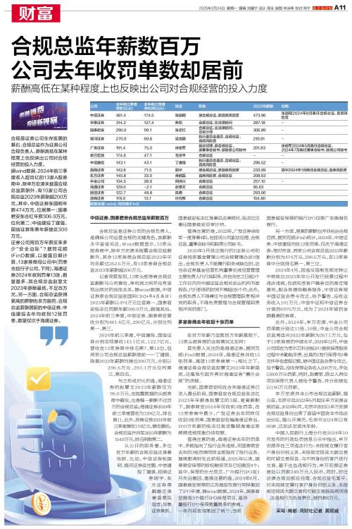 合规总监年薪数百万 公司去年收罚单数却居前