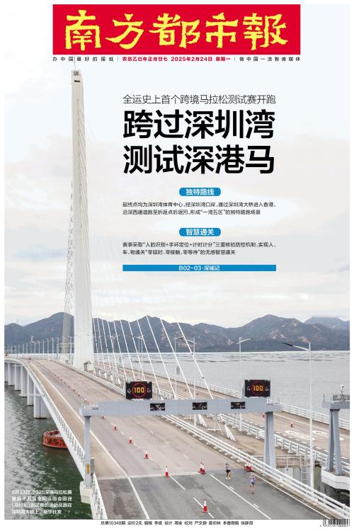 2月23日,2025深港马拉松赛暨第十五届全国运动会田径(马拉松)测试赛的运动员跑在深圳湾大桥上。
