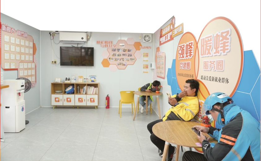 据了解,蜂享驿站项目以“车轮上”的新就业群体为重点,实施以聚“蜂”工程为总纲,以强“蜂”行动、暖“蜂”行动、先“蜂”行动为支撑的“一工程三行动”。蜂享驿站作为工会驿站的一部分,解决了户外劳动者“吃饭难、喝水难、休息难、如厕难”等急难愁盼问题。