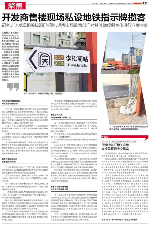近日,南都奥一新闻注意到,有网友在社交平台发帖表示,深圳一在售楼盘项目现场出现了疑似开发商私自设立的地铁标识。