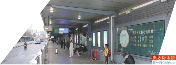 BRT站台,乘客在候车。