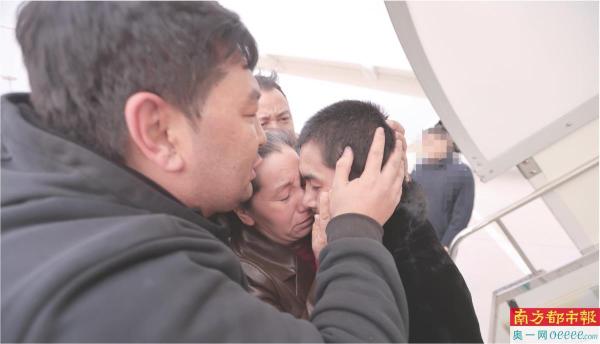 2月27日,被遣返人员在机场与家人团聚。 新华社发