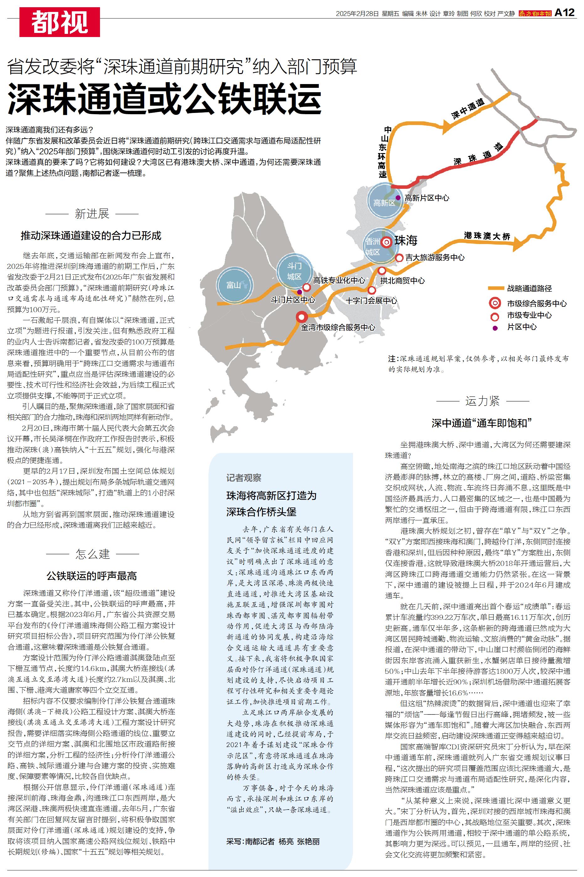 深珠通道或公铁联运